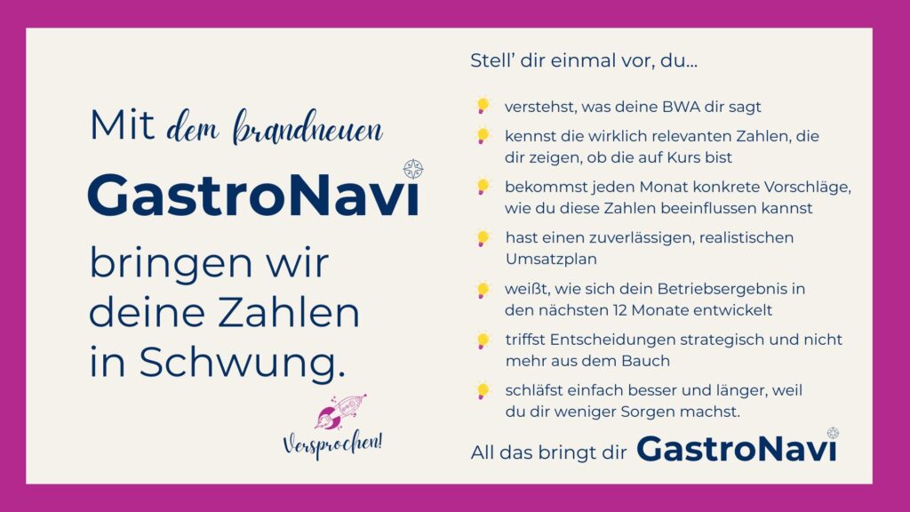 Mit unserem Kennzahlen-Service GASTRONAVI nehmen wir dich an die Hand.