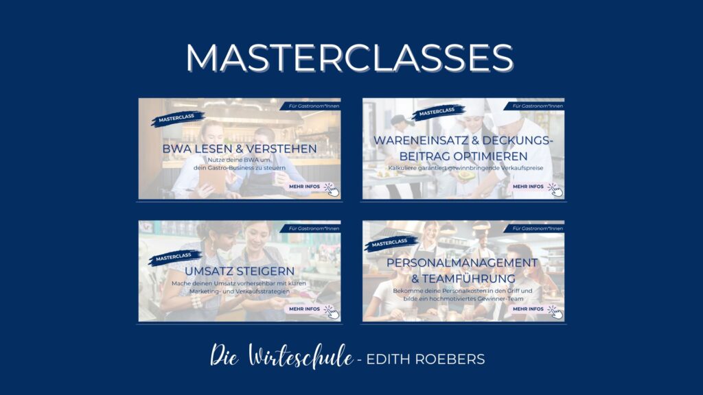 Mit meinem kostenlosen Workbook GASTRO-PROFIT-BOOSTER kannst du anfangen, Maßnahmen aus diesem Seminar umzusetzen, mit einfachen Schritt-für-Schritt-Anleitungen.